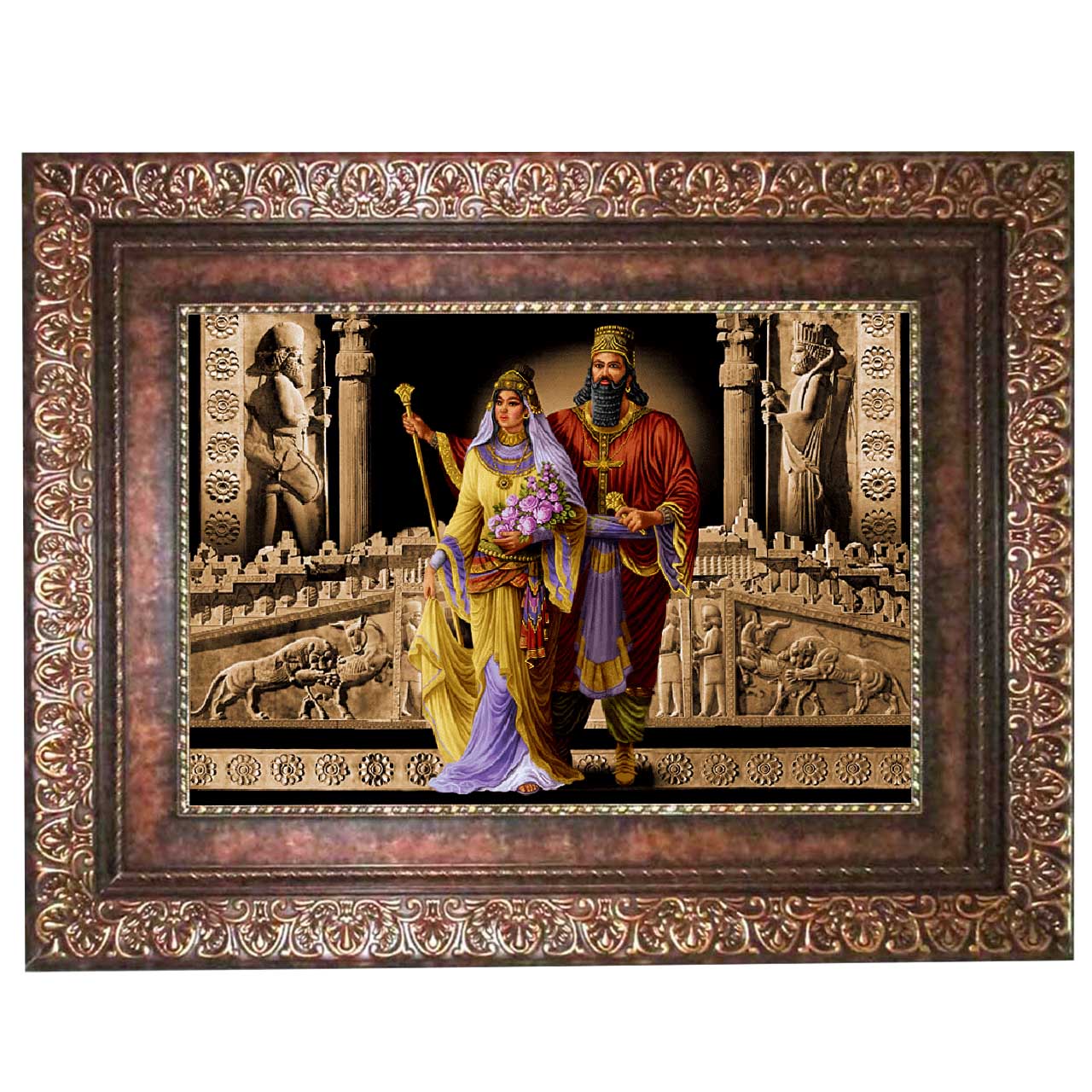 تابلو فرش ماشینی نقش نگار رضوی طرح کوروش و ماندانا مدل 503P